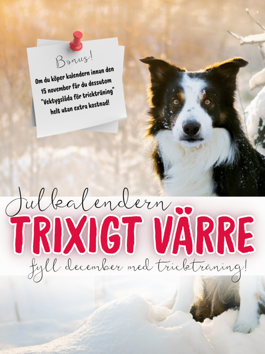 Med Trixigt Värre – Julkalendern för dig och din hund, får du ett nytt roligt trick att träna varje dag fram till jul + en vecka extra som vi bjuder på bara för att hålla hela december extra trixig.